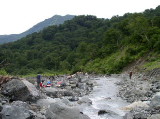 登山者が憩う白高地沢 |